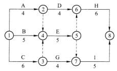 解析 计算时间参数确定关键线路为①→③→④→⑤→⑥→⑧,关键工作有C、E、H。所以B、D、E正确。