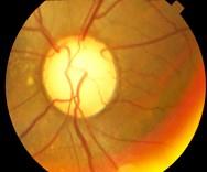 问题 男性,47岁,诉右眼眼胀痛,查见眼底表现酷似一朵盛开的牵牛花,视盘比正常的扩大35倍,视盘周围有色素环及萎缩区,视盘呈漏斗状,眼底检查如图,该患者可能患 ( )