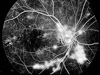 该图是何种疾病的荧光造影图 ( )A、视网膜血管炎B、以上都不是C、糖尿病视网膜病变D、视网膜中央静脉栓塞E、高血压性视网膜病变