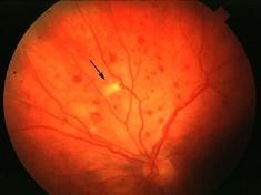 单纯性糖尿病性视网膜病变(DRP)硬性渗出(如图)位于 ( )A、内丛状层和内核层之间B、外丛状层和内核层之间C、内核层D、外核层...