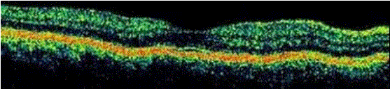 (如图)黄斑部裂孔检查应选择( )A、B超B、彩色多普勒成像C、光学相干断层扫描D、A超E、超声生物显微镜