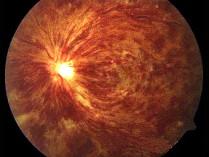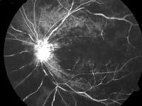 患者,男性,60岁,高血压病史10年,近1周突感左眼视力下降,视力由原来的0.8降至0.04,裂隙灯检查见眼前段(-),眼底检查如图,符合该病的描述的是 ...