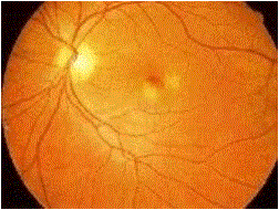患者,男,30岁,左眼视物不清2天,检查左眼视力0.9,眼前段(-),眼底检查如图,符合该病的临床表现为( )A、中央凹反光消失B、视力突然丧失 ...
