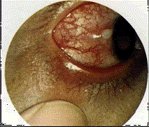 问题 患者,男性,20岁,右眼红3天就诊,眼部检查(如图)所示,角膜透明,诊断为 ( )