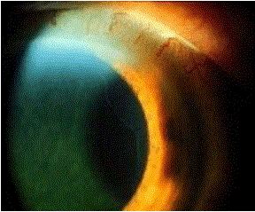前房角镜检查(如图)见小梁被虹膜根部贴附粘连为( )A、房角狭窄B、浅前房C、窄Ⅳ房角D、房角堵闭E、窄Ⅲ房角