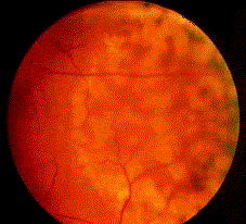 问题 一患者因乳腺癌行乳房切除术后1年来复查,见视盘颞侧有大量的深灰色隆起,(如图)诊断考虑是 ( )