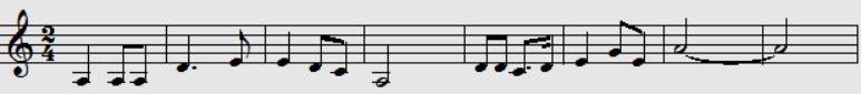 问题 下面谱例中旋律的调式是( )。