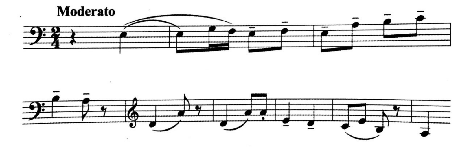 问题 下面谱例出自穆索尔斯基的哪部作品 ( )。