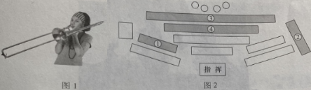 图一中的乐器在交响乐团(图二)中的位置是( )。 A① B② C③ D④
