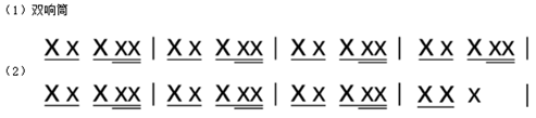 问题 编创器乐合奏曲。 要求: (1)自选打击乐器,为谱例《草原牧歌》编配第Ⅲ声部件奏: (3分) (2)所编配的伴奏以须也是固定音型,但不能与第Ⅱ声部节奏相同。(7分)