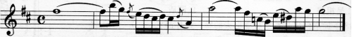 下面谱例出自巴赫的哪一部作品() A.《半夜幻想曲与赋格》 B.《马太受难曲》 C.《音乐的风险》 D.《G弦上的咏叹调》