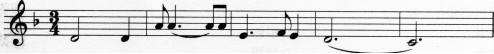 解析 谱例给出的是d小调的旋律,第二小节为I级主和弦的五音。因此正确答案为A。