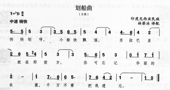 解析 【教学目标】 【情感·态度·价值观】通过学唱《划船曲》了解歌曲表达的人文内涵,感受国外民歌的艺术魅力.产生浓厚的兴趣。 【过程与方法】通过小组讨论、自主演唱的形式,提升表现能力及自主学习合作探究的能力。 【知识与技能】能够有感情地、完整地演唱整首歌曲,掌握弱起小节的打拍方式。 【教学难点】 能够掌握弱起小节的打拍方式,能够准确切入音乐,完整演唱歌曲。 【教学过程】 一、新课导入 师:同学们,老师今天给你们带来了几首地方的民歌,你们来猜一下。 第一首《沂蒙山小调》 生:…… 第二首《山丹丹花开红艳艳》 生:…… 第三首《走西口》 生:…… 师:今天老师再带领你们去一个地方,学习一下当地的民歌,感受一下当地民歌魅力.并想一想这与中国的民歌有什么不一样 二、新课教授 1.播放多媒体,老师带领学生对歌曲进行第一遍听赏,并请同学们说一说听完歌曲后的第一感受是什么速度如何把对自己印象最深的一句哼出来。 2.老师给学生进行范唱,学生跟着老师轻声地哼唱歌曲的旋律,画出歌曲的旋律线条. 3.加入划船的动作,再让学生跟着旋律学习歌曲. 4.教师弹奏钢琴,教唱第一遍。 同学们,在学习歌曲的过程中,老师发现大家有一个地方,起拍不是特别得准确.我们下面来看一下今天的一个新的知识点——弱起节奏。 5.学习弱起节奏 (1)教师简单讲解弱起节奏,学生能够理解弱起节奏的概念,跟着老师一起打下面节奏。 (2)跟着老师对下列节奏击打之后,老师将学生四人分为一组,进行相互问的击打练习.并由每组向老师进行逐一汇报。 (3)老师弹奏钢琴,学生演唱巩固弱起部分,并多次学唱歌曲。 6.跟随多媒体伴奏.完整演唱歌曲。 7.分析歌曲情感,速度和力度,适合加什么样的动作,将学生分组进行讨论。 8.学生跟随伴奏,有感情地演唱全曲,并加入创编的动作。 三、拓展延伸 老师播放视频,关于印度尼西亚的民族风情.介绍印度尼西亚的相关知识。