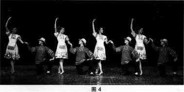 图4是以男女对舞为主的舞蹈形式,它的基本动作由两个踏步和一个跳踏步组成.其音乐特点为速度稍快,情绪活泼,二拍子,在第二拍的后半拍子上常稍做顿挫。它是下列舞...