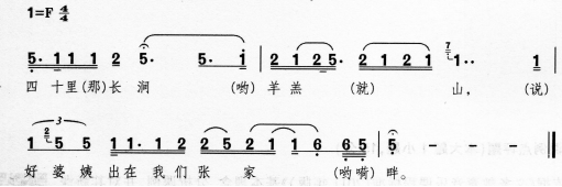 解析 旋律为陕西民歌《脚夫调》,是流传在陕西北部的一首信天游。