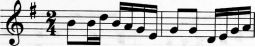 将下面谱例中的乐节发展成一个完成的乐段。 要求: (1)必须运用模进和重复两种发展手法。 (2)乐段由同头换尾的两个乐句构成。