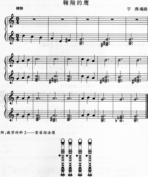 相关内容:依据,义务教育音乐课程标准(2011年版),理念,要求,教学设计,教学,对象,七年级,学生,教学内容,竖笛,翱翔的鹰