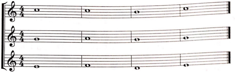 问题 下面谱例是合唱练声曲片段,其中四六和弦有几个?