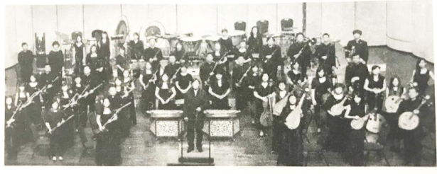 解析 分析图片能明显地看见正中间摆放的两台扬琴,图片右侧的琵琶、阮,上方的大锣等,这些乐器均为我国的民族乐器,故可以排除B项。C项民族管弦乐队是综合了传统丝竹乐队和吹打乐队,模仿了西方交响乐队的编制(约80—100人),分为拉弦乐器组、弹拨乐器组、吹管乐器组和打击乐器组;因音色、音区的需要,也常加入大提琴、定音鼓等西洋乐器。A、D项都属于小型民族器乐合奏,和图片中的人数不符;江南丝竹的乐队编制少则2—3人,多则7—8人;十番锣鼓的乐队编制约8—12人,有时也会达到约30人。