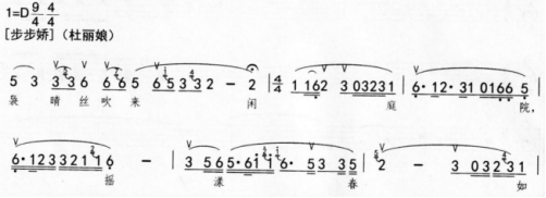 下面谱例出自哪一个戏曲剧目( ) A.豫剧《花木兰》 B.黄梅戏《天仙配》 C.昆曲《牡丹亭》 D.越剧《红楼梦》