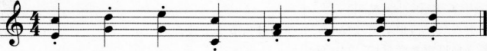 下面谱例中的音乐形象是蹦蹦跳跳的袋鼠,适合此段音乐的术语是( )。 A.dolce B.cantabile C.legato D.st...