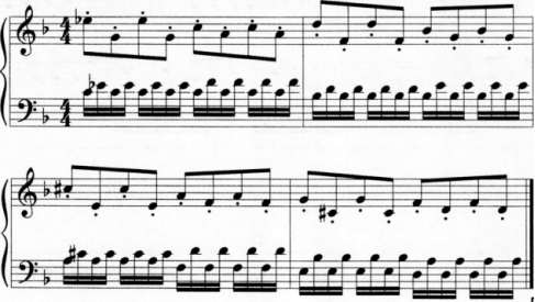 问题 下面谱例出自巴赫《d小调托卡塔与赋格》,其中哪一种技法能反映出巴洛克时期音乐的特点( )