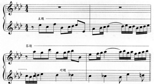 相关内容:下面,谱例,主题,声部,属调,特点,作品,体裁,奏鸣曲,赋格,奥尔,加农