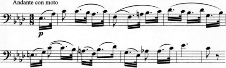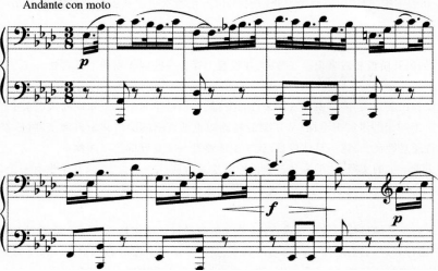 解析 题中所给谱例选自贝多芬《第五交响曲(命运)》中的第二乐章。如下谱: 因此正确答案为B。