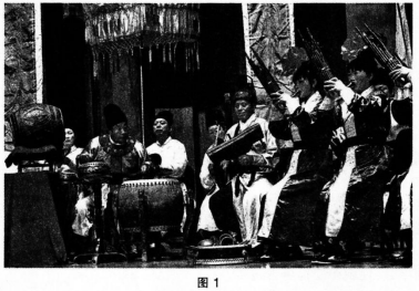 图1所示的演出形式是( )。 A.福建南音 B.西安鼓乐 C.北京智化寺音乐 D.浙东锣鼓