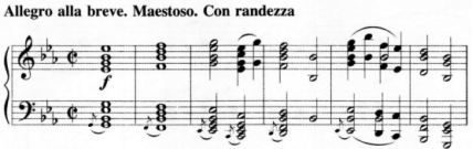 解析 谱例出自《图画展览会》中的第十曲《基辅大门》。