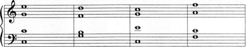 下面谱例中,开放排列的和弦数量有几个( ) A.1个 B.2个 C.3个 D.4个