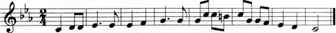 与下面谱例相同的调性是( )。 A.c自然小调 B.C宫调 C.c和声小调 D.