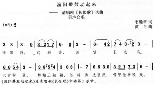 解析 (1)教学目标 【情感·态度·价值观】 了解歌剧与清唱剧的不同之处,能阐述自己的感受和见解,逐渐培养鉴赏音乐的能力。 【过程与方法】 充分地聆听音乐,比较音乐的体裁、表演形式,运用小组合作的方法对两首作品的不同之处进行分析。 【知识与技能】 学唱两首主题旋律,表演两个音乐作品并总结歌剧与清唱剧的不同之处。 (2)教学活动 ①教师播放歌剧片段视频《这一仗打得真漂亮》和清唱剧片段视频《渔阳鼙鼓动地来》,请同学们回答视频中的人物做了些什么动作有哪些表情他们的情绪是怎样的 ②学生回答,教师进行简单的概括。 (《这一仗打得真漂亮》这段视频中的演员穿着戏服,化着妆,有很多动作表演,有一两句独白,演员之间还有眼神的交流,并且从演员的表情上能看出来他们的心情很高兴。《渔阳鼙鼓动地来》是一种类似合唱的形式,演员没有穿特殊的戏服,没有动作,看不出表演者的情绪。) ③在教师的带领下,学生跟着老师一起学唱这两首主题旋律。 ④在教师的指导下,模仿视频中的演出形式分两组进行表演,在这个过程中更加深刻地体会两个音乐作品的不同之处。 ⑤组织学生进行小组讨论总结出歌剧与清唱剧的特点。 ⑥教师进行对比并总结歌剧与清唱剧的不同之处。 (歌剧是以唱为主,将音乐与戏剧、诗歌、舞蹈、舞台美术等融为一体的综合艺术。清唱剧是一种大型声乐套曲,通常采用 “只唱不演”也就是清唱的形式。) (3)设计意图 在比较歌剧与清唱剧的不同点时,首先要让学生对这两种不同的音乐形式有直观的了解,所以安排了观看视频的活动。在观看视频的过程中调动学生的感官能动性,对两种音乐形式产生最直观的印象。接下来带领学生学唱这两首主题旋律,这个活动主要是为后面的表演环节进行铺垫,目的是在表演过程中让学生能够通过自己的表现更加深刻地体会到两种音乐形式的不同之处。