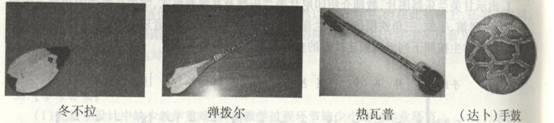 解析 冬不拉是哈萨克族的弹拨乐器,弹拨尔是维吾尔族、乌孜别克族的弹弦乐器,维吾尔 族的达卜也就是人们常说的新疆手鼓,热瓦普是维吾尔族、乌孜别克族的弹弦乐器。