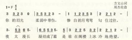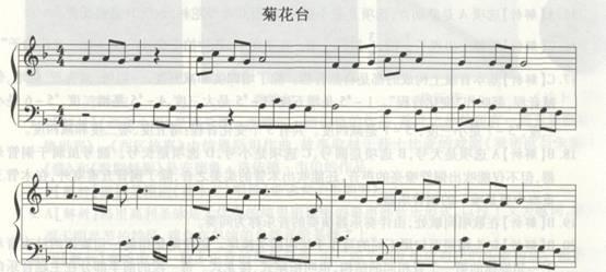 问题 为下面歌曲编配二声部合唱。 菊花台 要求: (1)在每一乐句停顿处(休止或较长的时值拍)用模仿手法为歌曲创作填充呼应式的第二 声部。 (2)将原歌曲作为高声部,自己创作的声部作为低声部,以二声部合唱的形式重新记谱。