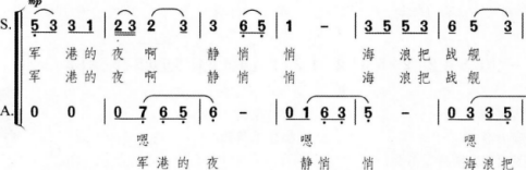 解析 女高音(Soprano)简写为“S.”,女低音(Alto)简写为“A.”,故该谱例为女声二部合唱。