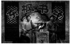 解析 图片曲艺形式为苏州弹词。它是曲艺的一种,流行于江苏南部、上海以及浙江的杭、嘉、湖地区。伴奏乐器以小三弦、琵琶为主。演员自弹自唱,有一人(单档)、二人(双档)和二人以上等表演形式、唱词以七字句为主,偶加三字头或夹杂三字句、五字句等。基本唱腔是上、下句变化反复结构。