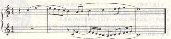 解析 缩小模仿即紧缩模仿,当应句模仿起句时,其节奏按比例加以缩短,形成旋律句法长度上的变化。采用这种手法时需注意:起句长度不宜过短,节奏应稍宽展。