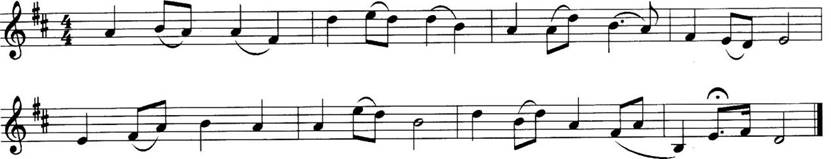 解析 此旋律属于展开中的贯穿技术,贯穿是指将歌曲主题中特征性音调或节奏型在音乐进行中以原型或变化的形式反复出现。