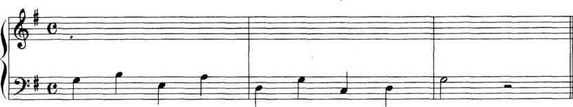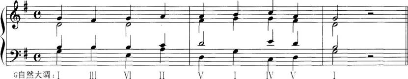 问题 根据下列谱例的旋律配置和声,和声进行要合理。 要求: (1)分析低音部表示的和弦,标记和弦级数。 (2)谱写合唱的四个声部。