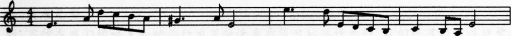 问题 旋律写作。 要求: (1)分别以谱例中乐句作为第1句和第2句,创作第3句和第4句。 (2)完成后的结构为再现单二部曲式。