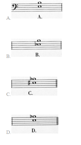 解析 减五度的音数为3。A选项是纯五度音程,B选项是增五度音程,C选项是倍减五度音程,D选项是减五度音程。因此正确答案为D。