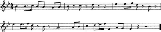 下列旋律转调前后的调式音乐分别为()。 A.bB大调转g小调 B.g小调转F大调 C.bB大调转F大调 D.g小调转bB大调