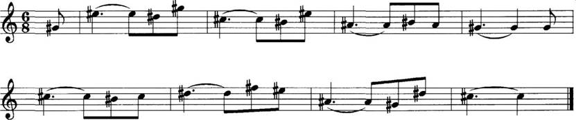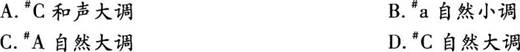 解析 旋律中出现了#G、#E、#D、#C、#B、#A、#F,最后音落在#C上,符合#C大调(七个升号)的条件,所以为#C自然大调。