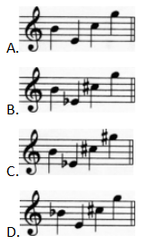 解析 调式音阶中的不稳定音级为Ⅱ、Ⅲ、Ⅵ、Ⅶ级。D和声大调调号为2个升号.不稳定音级为E、G、bB(和声大调降Ⅵ)、#C;d和声小调调号为一个降号(关系大调F大调),不稳定音级为e、g、bb、#c(和声小调升Ⅶ)。故答案为D。 名师如何巧解题?查看视频解析>>