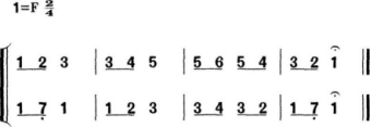 下面谱例中,出现音程次数较多的是( )音程。 A.小三 B.大三 C.纯一 D.纯四