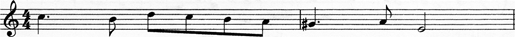 问题 旋律写作。 要求: (1)以下面谱列中乐句作为第一乐句,运用鱼咬尾的手法编写3-4小节。 (2)再根据1-4小节创作5-8小节,构成一个单一部曲式的乐段。