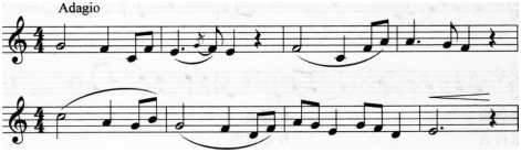 下列旋律片段是( )。 A.《威廉?退尔》序曲 B.《天堂与地狱》序曲 C.《自由射手》序曲 D.《塞维利亚的理发师》序曲