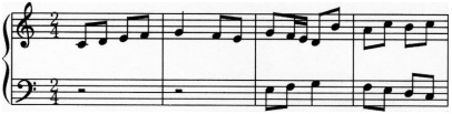问题 下谱例中,使用的模仿手法是( )。