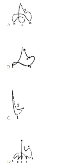 解析 《青春舞曲》为4/4拍,只有A选项是四拍子的指挥手势,B选项是三拍子指挥手势,C选项是二拍子指挥手势,D选项是六拍子指挥手势。